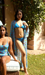 Complete your beach look with our cerulean blue string bikini bottom. This low-rise bottom features thin side ties that allow you to adjust the coverage and create a custom fit. The vibrant cerulean blue shade looks gorgeous in the sunlight. Adjust the ties to create the perfect amount of coverage for your preference and style. Mix and match this bottom with any of our colorful bikini tops to create your own unique look. Best paired with Triangle Movable Bikini Top - Cerulean Blue. You can opt to stylishly cover up with our Short Sarong - Lotus Sky.